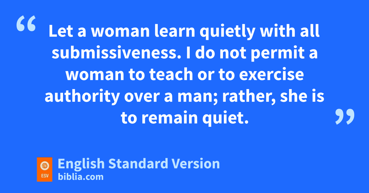 8 I desire then that jin every place the men should pray, klifting lholy hands without anger or quarreling; 9 likewise also mthat women should adorn themselves in respectable apparel, with modesty and self-control, not with braided hair and gold or pearls or costly attire, 10 nbut with what is proper for women who profess godliness—with good works. 11 Let a woman learn quietly owith all submissiveness. 12 pI do not permit a woman to teach or to exercise authority over a man; rather, she is to remain quiet. 13 qFor Adam was formed first, rthen Eve; 14 and Adam was not deceived, but sthe woman was deceived and became a transgressor. 15 Yet she will be saved through tchildbearing—if they continue in ufaith and love and holiness, with self-control.