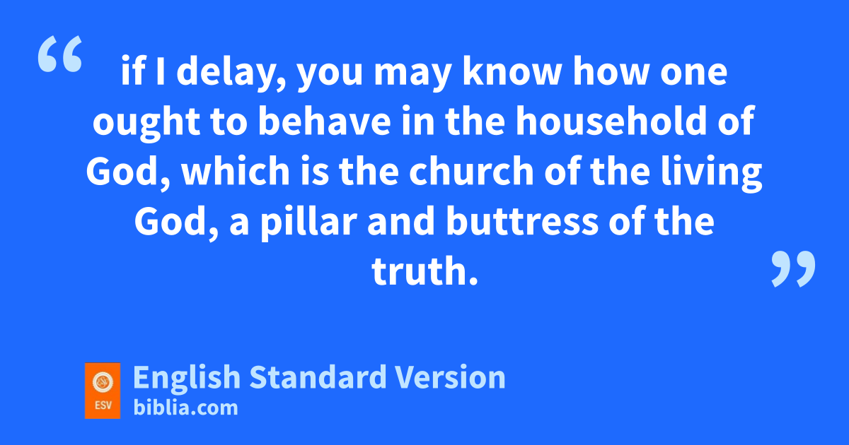 14 I hope to come to you soon, but I am writing these things to you so that, 15 if I delay, you may know how one ought to behave in the household of God, which is the church of the living God, a pillar and buttress of the truth. 16 Great indeed, we confess, is the mystery of godliness: