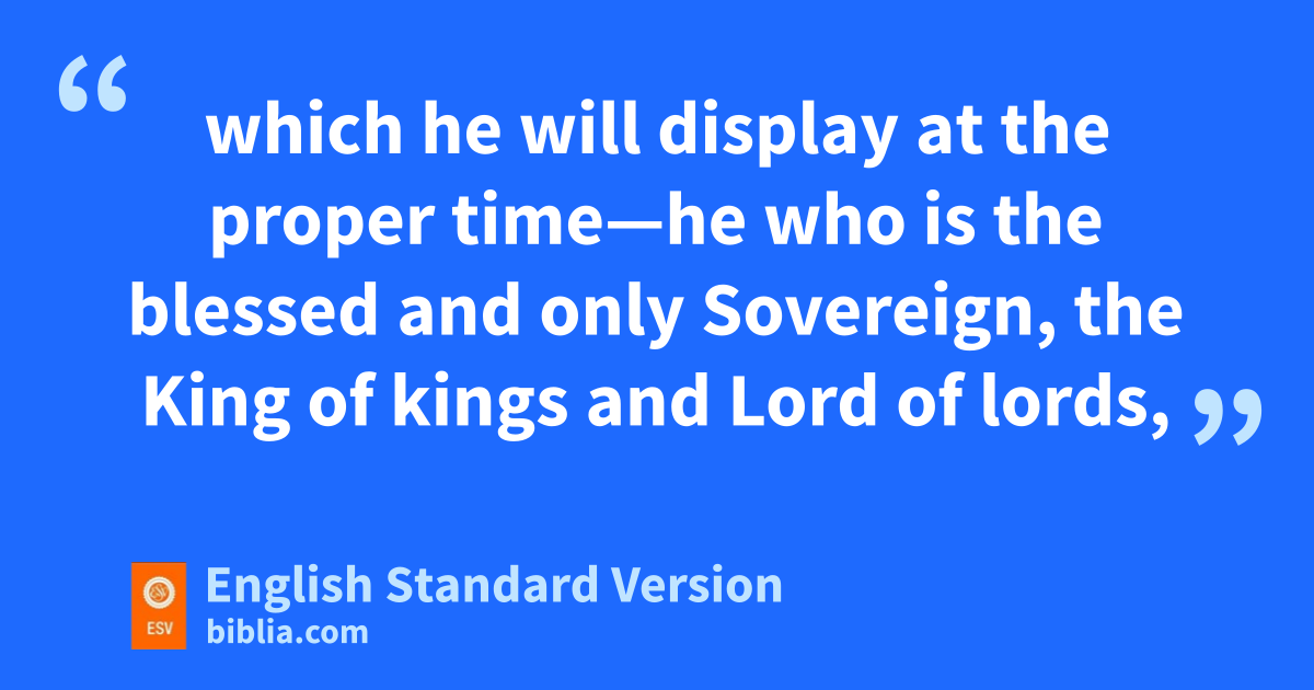 11 But as for you, jO man of God, kflee these things. lPursue righteousness, godliness, faith, love, steadfastness, gentleness. 12 mFight the good fight of the faith. nTake hold of the eternal life oto which you were called and about which you made pthe good confession in the presence of many witnesses. 13 qI charge you in the presence of God, who gives life to all things, and of Christ Jesus, rwho in his testimony before4 Pontius Pilate made pthe good confession, 14 to keep the commandment unstained and free from reproach until sthe appearing of our Lord Jesus Christ, 15 which he will display tat the proper time—he who is uthe blessed and only Sovereign, vthe King of kings and Lord of lords, 16 wwho alone has immortality, xwho dwells in yunapproachable light, zwhom no one has ever seen or can see. To him be honor and eternal dominion. Amen.