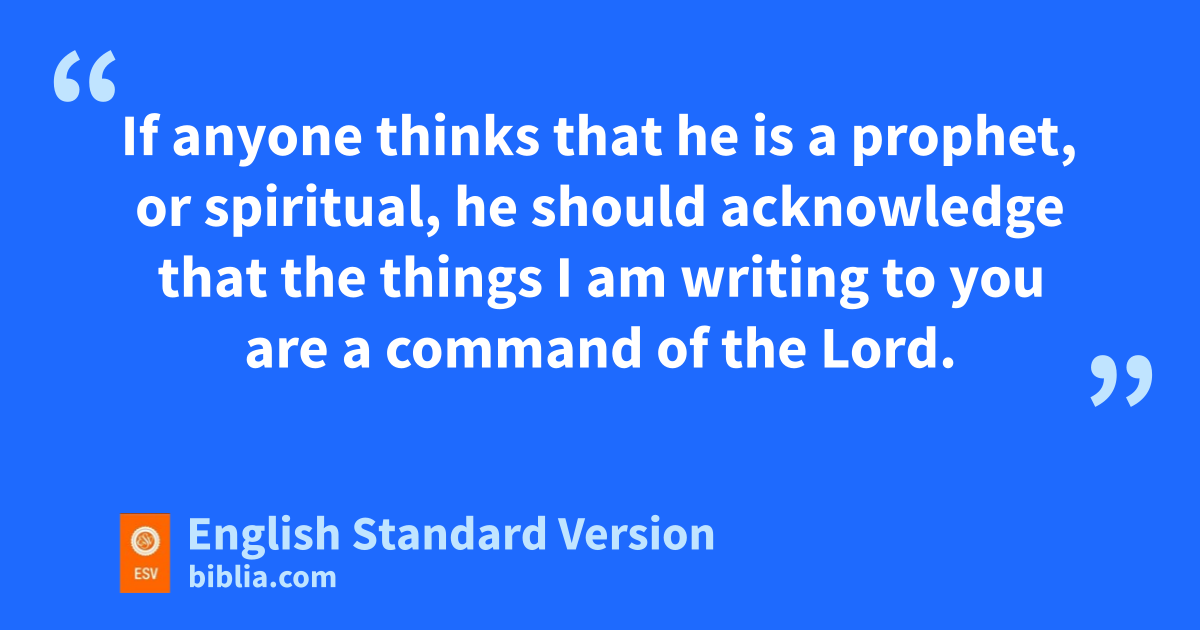 36 Or was it from you that the word of God came? Or are you the only ones it has reached? 37 cIf anyone thinks that he is a prophet, or spiritual, he should acknowledge that the things I am writing to you are a command of the Lord. 38 If anyone does not recognize this, he is not recognized. 39 So, my brothers, dearnestly desire to prophesy, and do not forbid speaking in tongues. 40 eBut all things should be done decently and fin order.