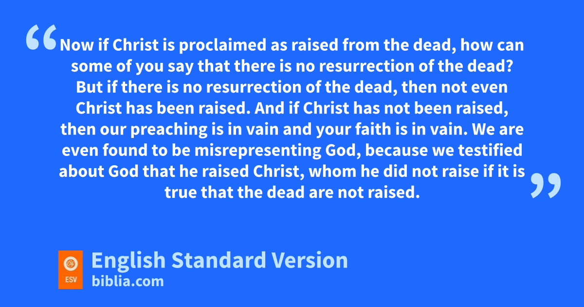 12 Now if Christ is proclaimed as raised from the dead, zhow can some of you say that there is no resurrection of the dead? 13 But if there is no resurrection of the dead, athen not even Christ has been raised. 14 And if Christ has not been raised, then our preaching is in vain and your faith is in vain. 15 We are even found to be misrepresenting God, because we testified about God that bhe raised Christ, whom he did not raise if it is true that the dead are not raised. 16 For if the dead are not raised, not even Christ has been raised. 17 And if Christ has not been raised, your faith is futile and cyou are still in your sins. 18 Then those also who dhave fallen asleep in Christ have perished. 19 If in Christ we have hope2 in this life only, ewe are of all people most to be pitied.
