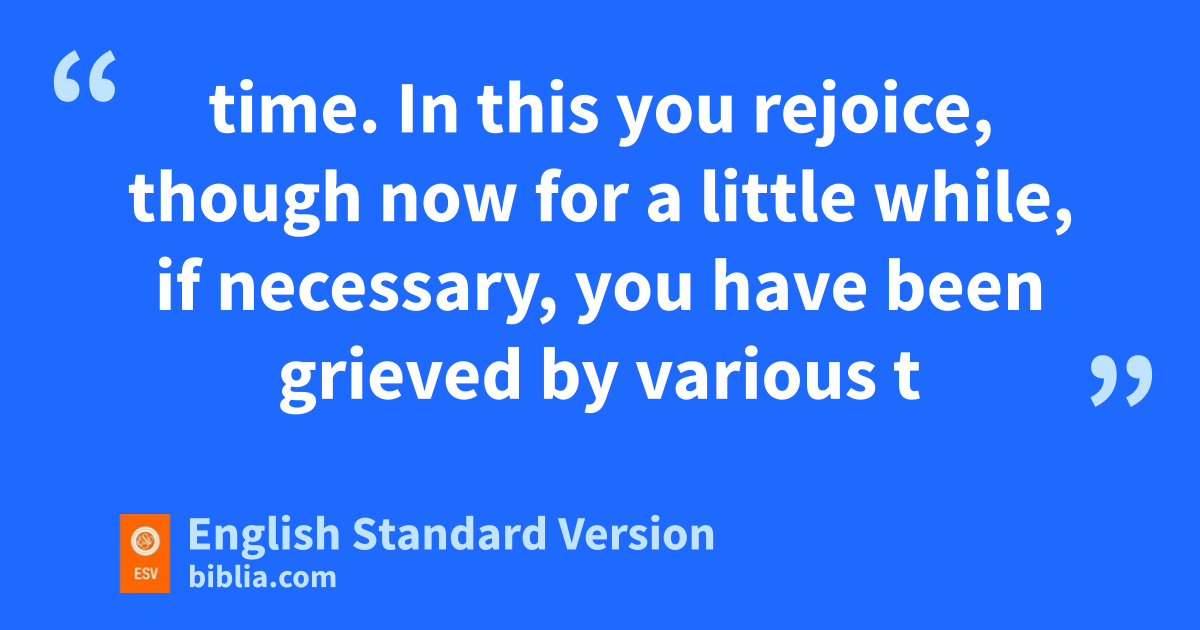 3 gBlessed be the God and Father of our Lord Jesus Christ! hAccording to his great mercy, ihe has caused us to be born again to a living hope jthrough the resurrection of Jesus Christ from the dead, 4 to kan inheritance that is imperishable, undefiled, and lunfading, mkept in heaven for you, 5 who by God’s power are being guarded nthrough faith for a salvation oready to be revealed in the last time. 6 In this you rejoice, though now for a little while, if necessary, you have been grieved by pvarious trials, 7 so that qthe tested genuineness of your faith—more precious than gold that perishes rthough it is tested by sfire—may be found to result in tpraise and glory and honor at the revelation of Jesus Christ. 8 uThough you have not seen him, you love him. vThough you do not now see him, you believe in him and rejoice with joy that is inexpressible and filled with glory, 9 obtaining wthe outcome of your faith, the salvation of your souls.