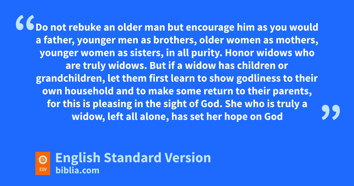 5 bDo not rebuke an older man but encourage him as you would a father, cyounger men as brothers, 2 older women as mothers, younger women as sisters, in all purity.