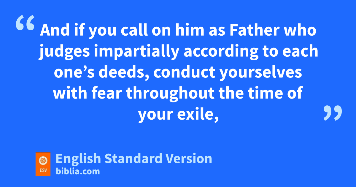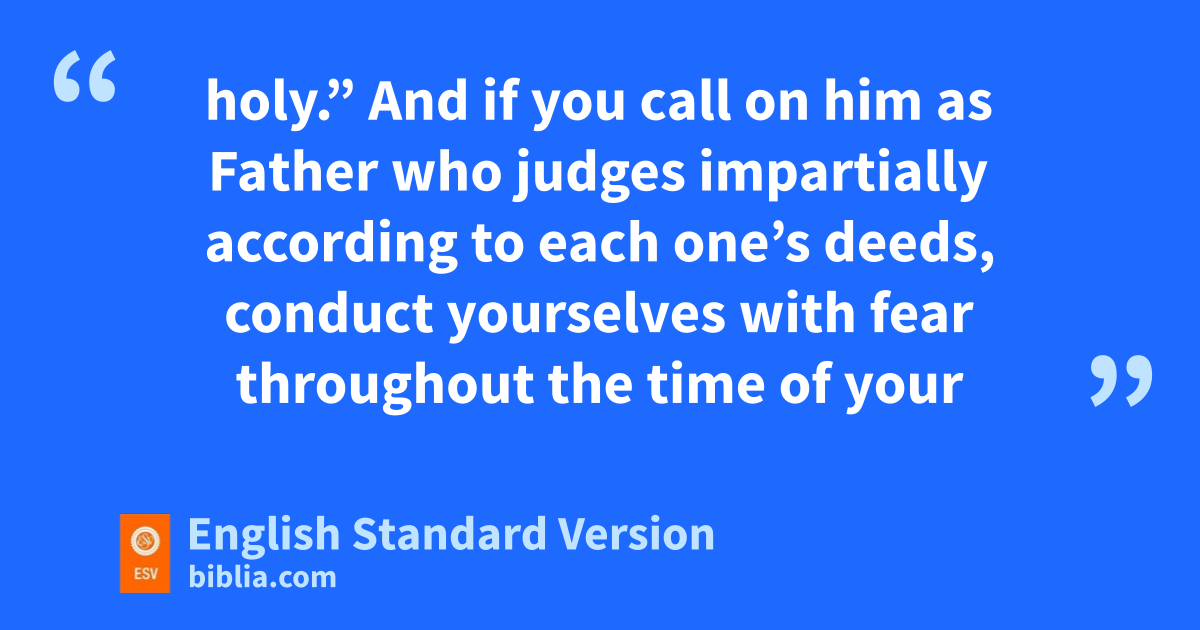 13 Therefore, gpreparing your minds for action,2 and hbeing sober-minded, set your hope fully on the grace that will be brought to you at the revelation of Jesus Christ. 14 As obedient children, ido not be conformed to the passions jof your former ignorance, 15 but kas he who called you is holy, you also be holy lin all your conduct, 16 since it is written, m“You shall be holy, for I am holy.” 17 And if you ncall on him as Father who ojudges pimpartially according to each one’s deeds, conduct yourselves qwith fear throughout the time of your exile, 18 knowing that you rwere ransomed from sthe futile ways inherited from your forefathers, not with perishable things such as silver or gold, 19 but twith the precious blood of Christ, like that of ua lamb vwithout blemish or spot. 20 He was foreknown before the foundation of the world but wwas made manifest xin the last times for the sake of you 21 ywho through him are believers in God, zwho raised him from the dead and agave him glory, so that your faith and hope are in God.