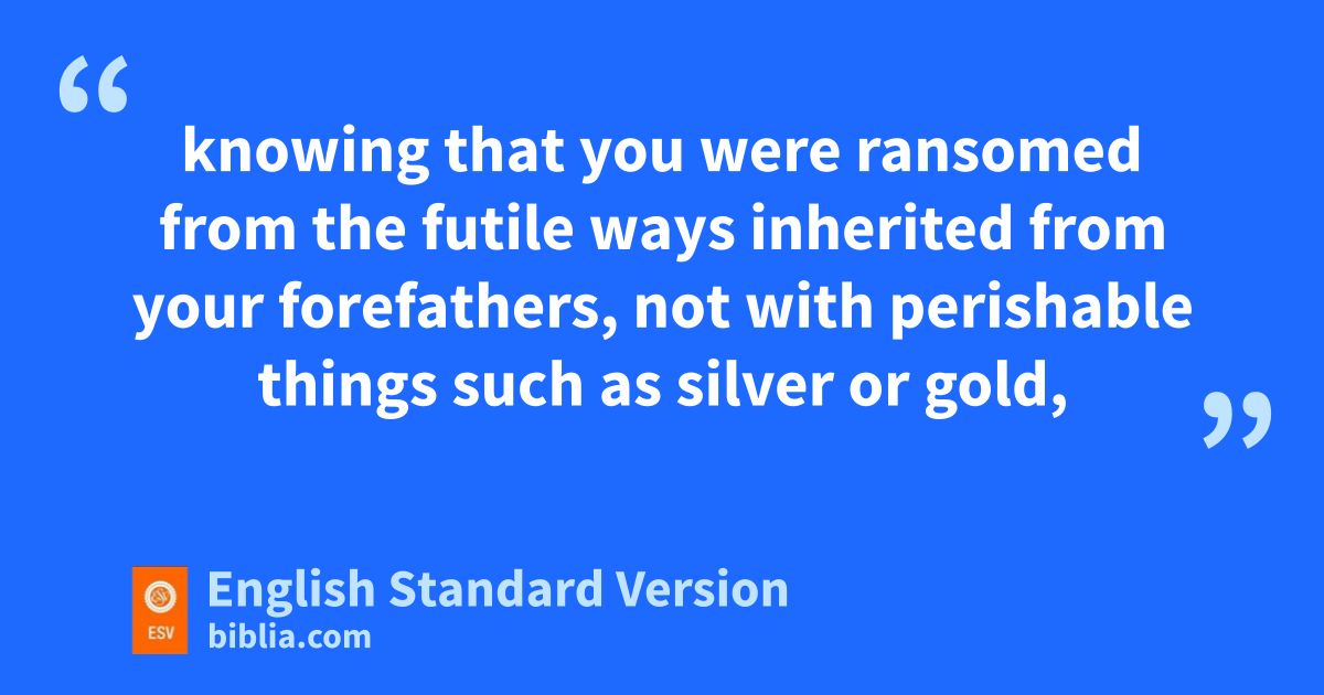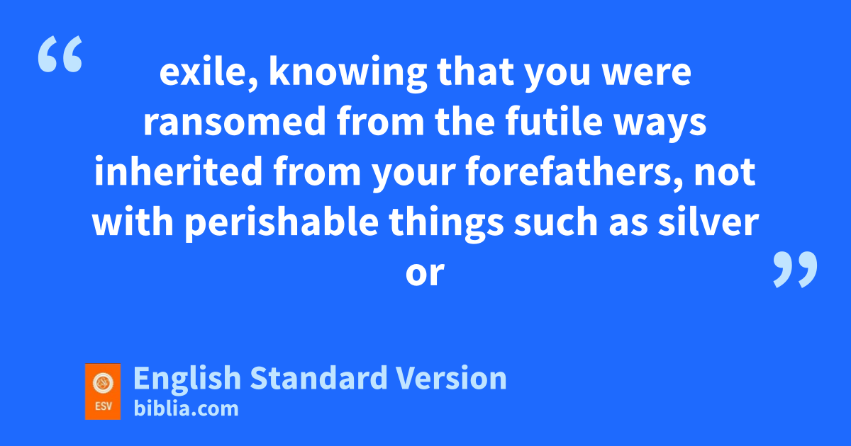 13 Therefore, gpreparing your minds for action,2 and hbeing sober-minded, set your hope fully on the grace that will be brought to you at the revelation of Jesus Christ. 14 As obedient children, ido not be conformed to the passions jof your former ignorance, 15 but kas he who called you is holy, you also be holy lin all your conduct, 16 since it is written, m“You shall be holy, for I am holy.” 17 And if you ncall on him as Father who ojudges pimpartially according to each one’s deeds, conduct yourselves qwith fear throughout the time of your exile, 18 knowing that you rwere ransomed from sthe futile ways inherited from your forefathers, not with perishable things such as silver or gold, 19 but twith the precious blood of Christ, like that of ua lamb vwithout blemish or spot. 20 He was foreknown before the foundation of the world but wwas made manifest xin the last times for the sake of you 21 ywho through him are believers in God, zwho raised him from the dead and agave him glory, so that your faith and hope are in God.