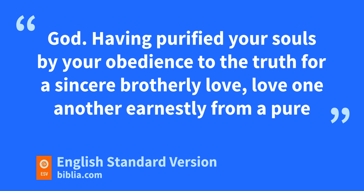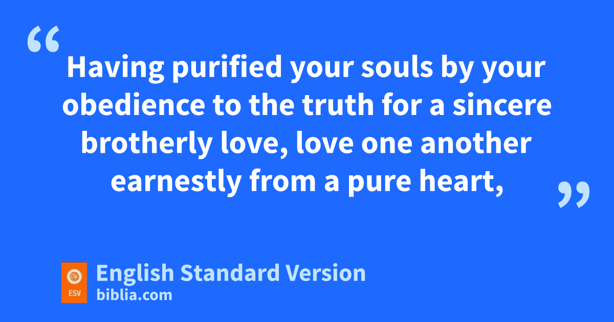 22 Having purified your souls by your obedience to the truth for ba sincere brotherly love, clove one another earnestly from a pure heart, 23 dsince you have been born again, enot of perishable seed but of imperishable, through fthe living and abiding word of God; 24 for