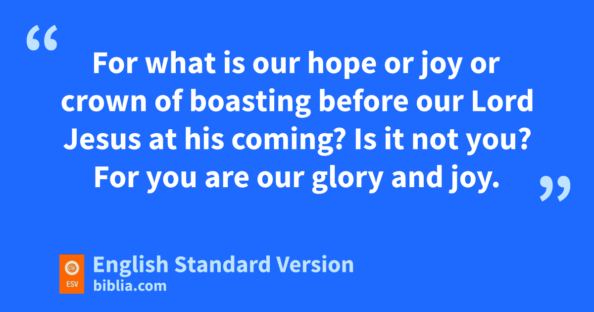 17 But since we were torn away from you, brothers, for a short time, xin person not in heart, we endeavored the more eagerly and with great desire yto see you face to face, 18 because we wanted to come to you—I, Paul, again and again—but Satan zhindered us. 19 For what is our hope or ajoy or crown of boasting bbefore our Lord Jesus at his ccoming? Is it not you? 20 For you are our glory and joy.
