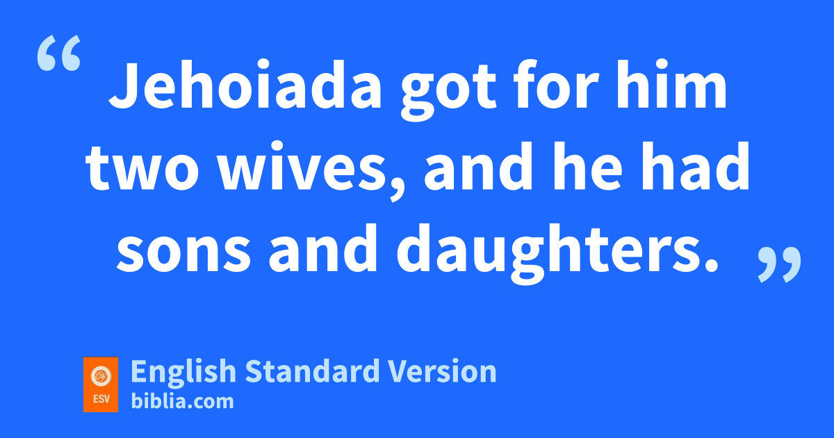 24 cJoash1 was seven years old when he began to reign, and he reigned forty years in Jerusalem. His mother’s name was Zibiah of Beersheba. 2 dAnd Joash did what was right in the eyes of the Lord all the days of Jehoiada the priest. 3 Jehoiada got for him two wives, and he had sons and daughters.