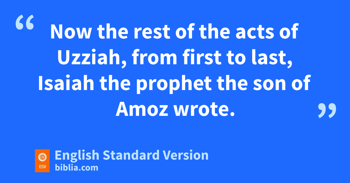 22 Now the rest of the acts of Uzziah, from first to last, zIsaiah the prophet the son of Amoz wrote. 23 And Uzziah slept with his fathers, and they buried him with his fathers in the burial field that belonged to the kings, for they said, “He is a leper.” And Jotham his son reigned in his place.