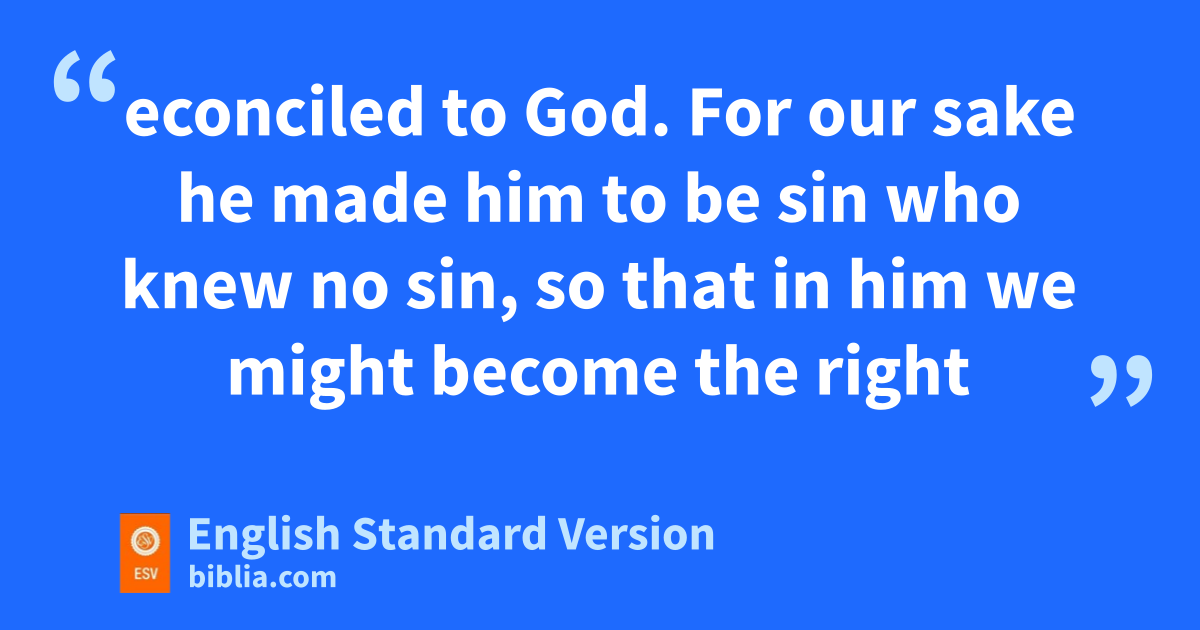 16 From now on, therefore, hwe regard no one according to the flesh. Even though we once regarded Christ according to the flesh, we regard him thus no longer. 17 Therefore, if anyone is iin Christ, he is ja new creation.2 kThe old has passed away; behold, the new has come. 18 All this is from God, lwho through Christ reconciled us to himself and gave us mthe ministry of reconciliation; 19 that is, in Christ God was reconciling3 the world to himself, nnot counting their trespasses against them, and entrusting to us mthe message of reconciliation. 20 Therefore, owe are ambassadors for Christ, pGod making his appeal through us. We implore you on behalf of Christ, be reconciled to God. 21 qFor our sake he made him to be sin rwho knew no sin, so that in him we might become sthe righteousness of God.