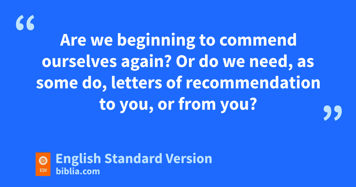 3 qAre we beginning to commend ourselves again? Or do we need, ras some do, sletters of recommendation to you, or from you? 2 tYou yourselves are our letter of recommendation, written on our1 hearts, to be known and read by all. 3 And you show that you are a letter from Christ delivered by us, written not with ink but with the Spirit of uthe living God, not on vtablets of stone but on wtablets of xhuman hearts.2
