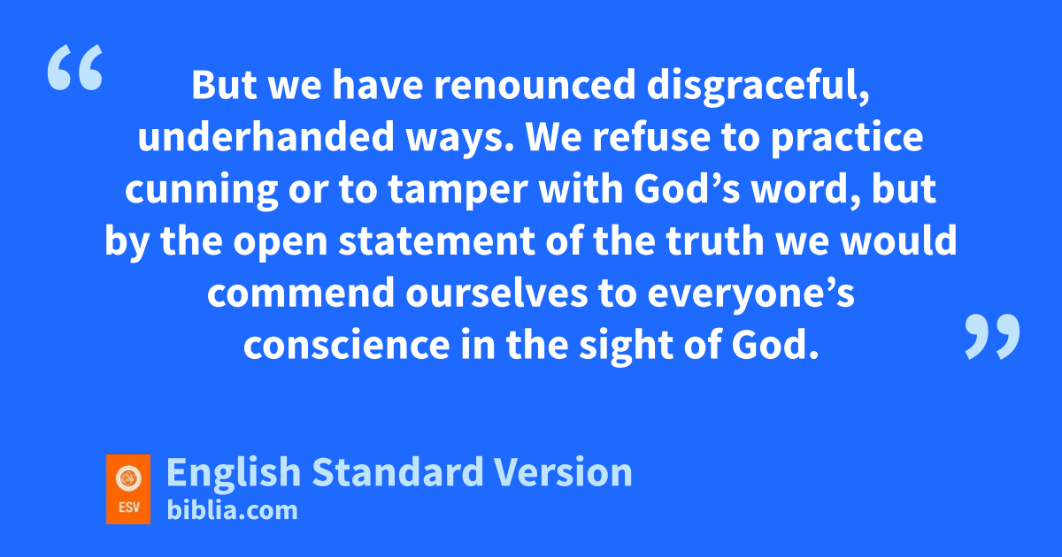 4 Therefore, having xthis ministry yby the mercy of God,1 we do not lose heart. 2 But we have renounced zdisgraceful, underhanded ways. We refuse to practice2 cunning or ato tamper with God’s word, but bby the open statement of the truth cwe would commend ourselves to everyone’s conscience in the sight of God. 3 And even dif our gospel is veiled, eit is veiled to fthose who are perishing. 4 In their case gthe god of this world dhas blinded the minds of the unbelievers, to keep them from seeing hthe light of ithe gospel of the glory of Christ, jwho is the image of God. 5 For what kwe proclaim is not ourselves, but Jesus Christ as Lord, with lourselves as your servants3 for Jesus’ sake. 6 For God, who said, m“Let light shine out of darkness,” nhas shone in our hearts to give othe light of the knowledge of the glory of God in the face of Jesus Christ.