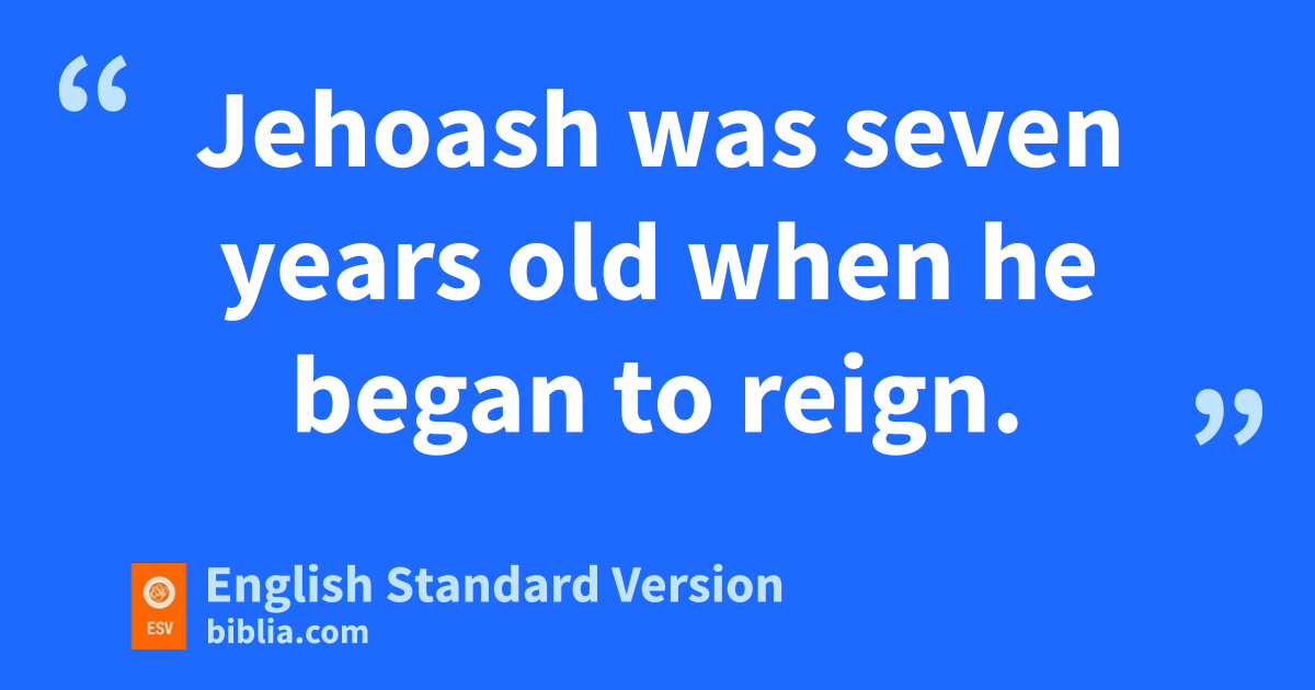 11 uNow when vAthaliah the mother of Ahaziah saw that her son was dead, she arose and destroyed all the royal family. 2 But Jehosheba, the daughter of King Joram, sister of Ahaziah, took wJoash the son of Ahaziah and stole him away from among the king’s sons who were being put to death, and she put1 him and his nurse in a bedroom. Thus they2 hid him from Athaliah, so that he was not put to death. 3 And he remained with her six years, hidden in the house of the Lord, while Athaliah reigned over the land.
