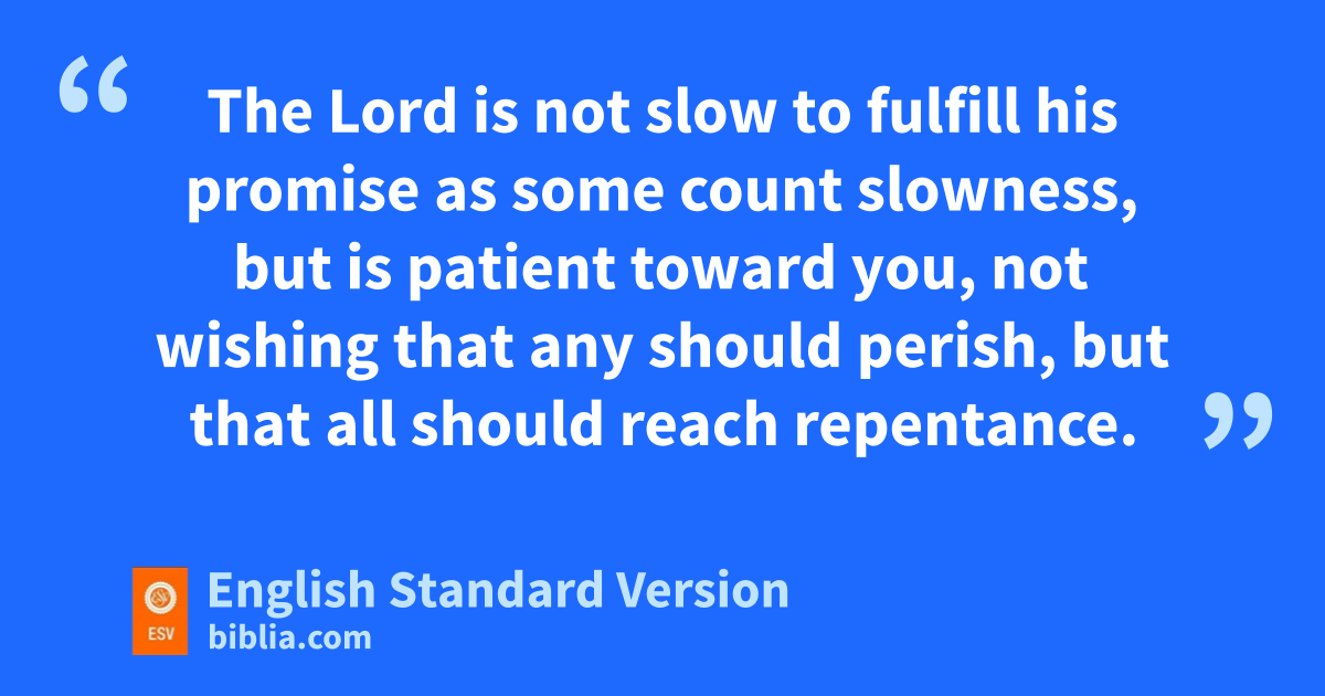 8 But do not overlook this one fact, beloved, that with the Lord one day is as a thousand years, and ta thousand years as one day. 9 uThe Lord is not slow to fulfill his promise vas some count slowness, but wis patient toward you,1 xnot wishing that any should perish, but ythat all should reach repentance. 10 But zthe day of the Lord will come like a thief, and then athe heavens will pass away with a roar, and bthe heavenly bodies2 will be burned up and dissolved, and the earth and the works that are done on it will be exposed.3