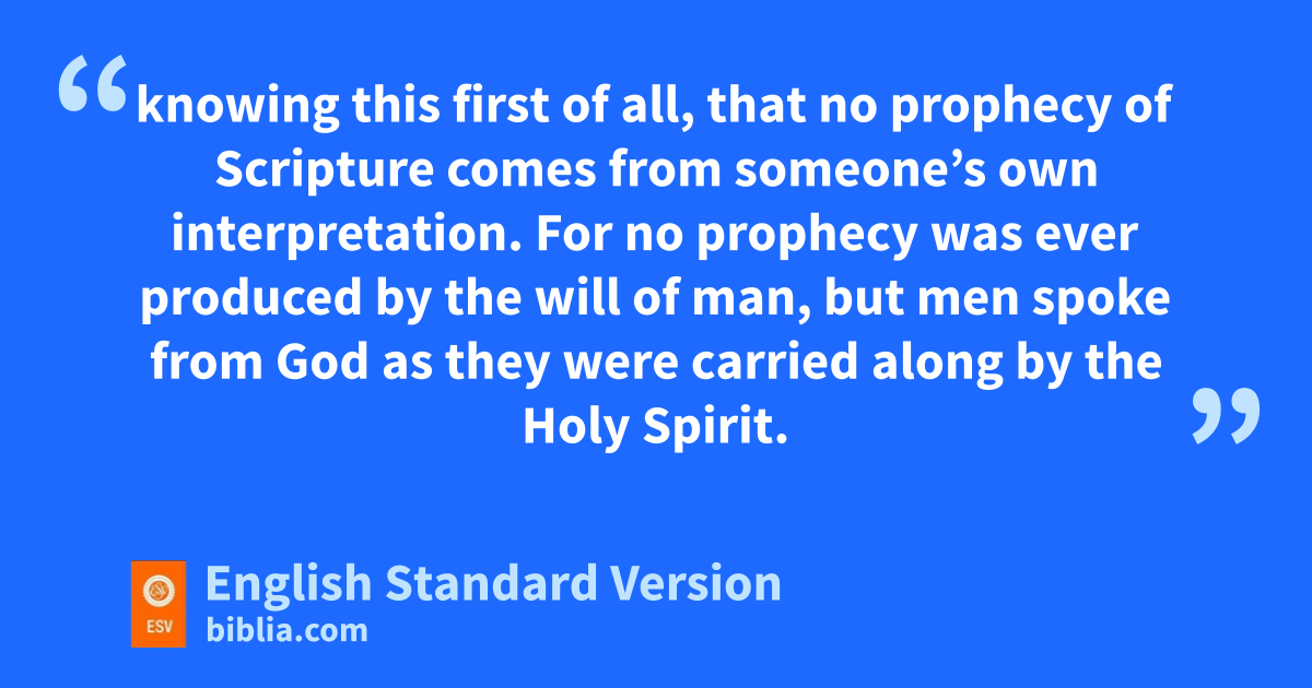 16 For we did not follow zcleverly devised amyths when we made known to you bthe power and ccoming of our Lord Jesus Christ, but dwe were eyewitnesses of his majesty. 17 For when he received honor and glory from God the Father, and the voice was borne to him by the Majestic Glory, e“This is my beloved Son,9 with whom I am well pleased,” 18 we ourselves heard this very voice borne from heaven, for we were with him on fthe holy mountain. 19 And gwe have the prophetic word more fully confirmed, to which you will do well to pay attention has to a lamp shining in a dark place, until ithe day jdawns and the morning star rises in your hearts, 20 knowing this first of all, that no prophecy of Scripture comes from someone’s own interpretation. 21 For kno prophecy was ever produced by the will of man, but men spoke from God las they were carried along by the Holy Spirit.