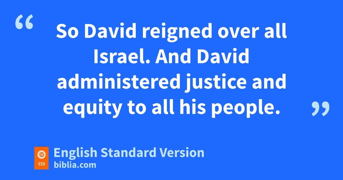 15 So David reigned over all Israel. And David administered justice and equity to all his people. 16 cJoab the son of Zeruiah was over the army, and dJehoshaphat the son of Ahilud was recorder, 17 and eZadok the son of Ahitub and Ahimelech the son of Abiathar were priests, and fSeraiah was secretary, 18 and gBenaiah the son of Jehoiada was over1 the hCherethites and the Pelethites, and David’s sons were priests.