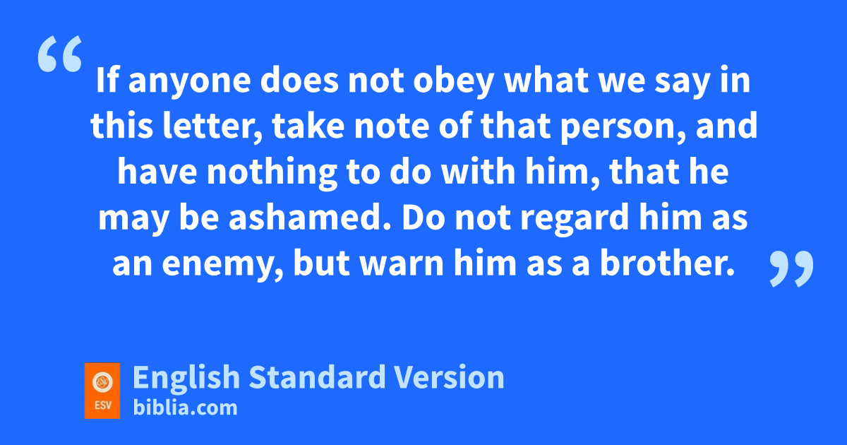 13 As for you, brothers, edo not grow weary in doing good. 14 If anyone does not obey what we say in this letter, take note of that person, and fhave nothing to do with him, that he may be ashamed. 15 gDo not regard him as an enemy, but hwarn him as a brother.