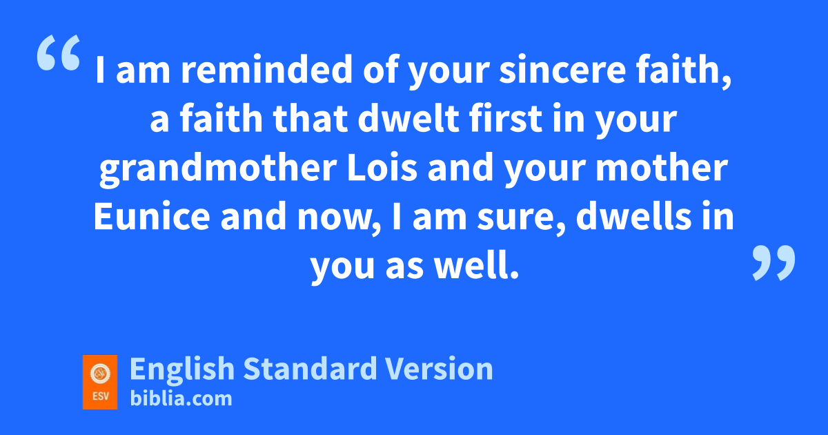 3 fI thank God gwhom I serve, as did my ancestors, hwith a clear conscience, as I remember you iconstantly in my prayers night and day. 4 jAs I remember your tears, kI long to see you, that I may be filled with joy. 5 I am reminded of lyour sincere faith, a faith that dwelt first in your grandmother Lois and myour mother Eunice and now, I am sure, dwells in you as well. 6 For this reason I remind you nto fan into flame the gift of God, which is in you through the laying on of my hands, 7 for God gave us oa spirit not of fear but pof power and love and self-control.