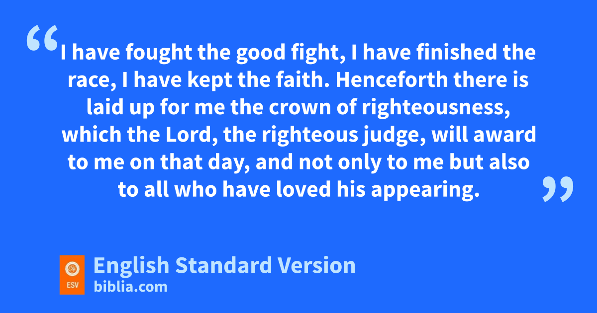 6 For uI am already being poured out as a drink offering, and the time of my vdeparture has come. 7 wI have fought the good fight, xI have finished the race, I have kept the faith. 8 Henceforth there is ylaid up for me zthe crown of righteousness, which the Lord, athe righteous judge, will award to me on bthat day, and not only to me but also to all cwho have loved his appearing.