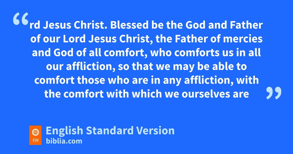 3 fBlessed be the gGod and Father of our Lord Jesus Christ, the Father of mercies and hGod of all comfort, 4 iwho comforts us in all our affliction, so that we may be able to comfort those who are in any affliction, with the comfort with which we ourselves are comforted by God. 5 For as we share abundantly in jChrist’s sufferings, so through Christ we share abundantly in comfort too.1 6 kIf we are afflicted, it is for your comfort and salvation; and if we are comforted, it is for your comfort, which you experience when you patiently endure the same sufferings that we suffer. 7 Our hope for you is unshaken, for we know that as you lshare in our sufferings, you will also share in our comfort.