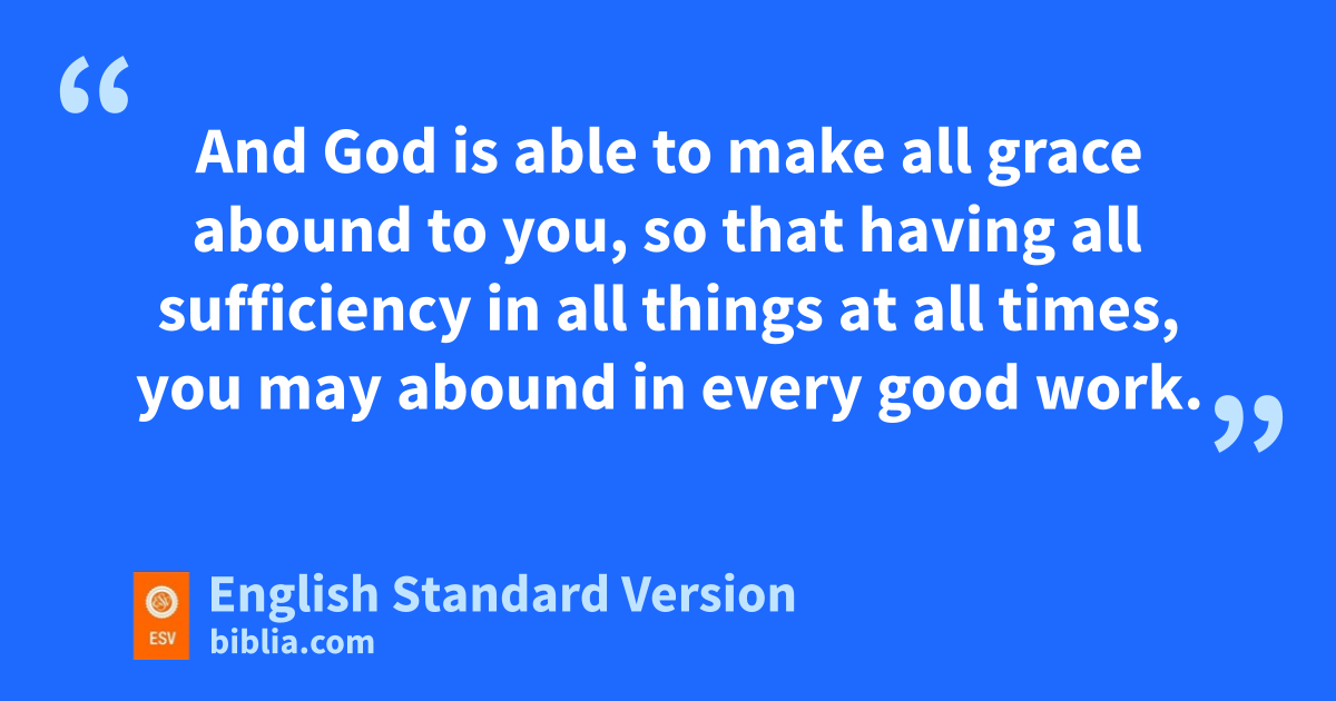 6 The point is this: vwhoever sows sparingly will also reap sparingly, and whoever sows bountifully4 will also reap bountifully. 7 Each one must give as he has decided in his heart, wnot reluctantly or under compulsion, for xGod loves a cheerful giver. 8 And yGod is able to make all grace abound to you, so that having all sufficiency5 in all things at all times, you may abound in every good work. 9 As it is written,
