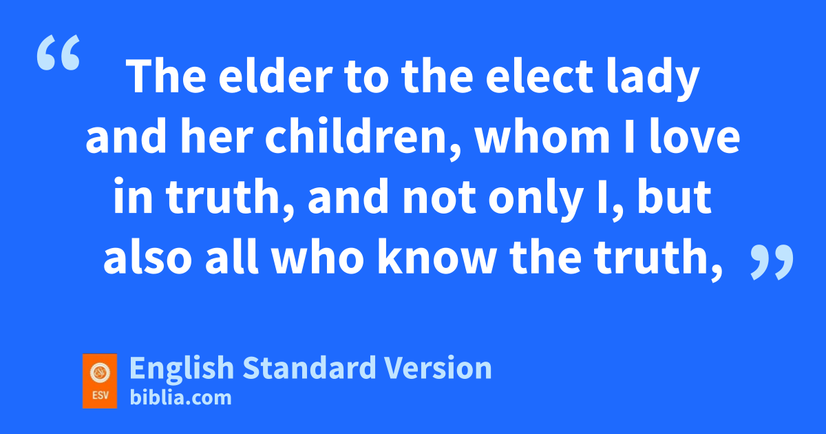 1 aThe elder to the elect lady and her children, bwhom I love in truth, and not only I, but also all who cknow dthe truth, 2 ebecause of the truth that abides in us and will be with us forever: