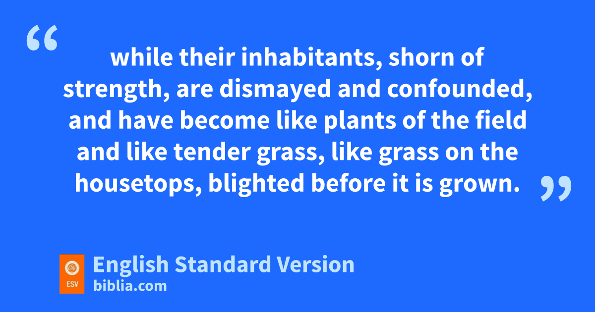 32 “Therefore thus says the Lord concerning the king of Assyria: He shall not come into this city or shoot an arrow there, or come before it with a shield or qcast up a siege mound against it. 33 rBy the way that he came, by the same he shall return, and he shall not come into this city, declares the Lord. 34 sFor I will defend this city to save it, for my own sake tand for the sake of my servant David.”