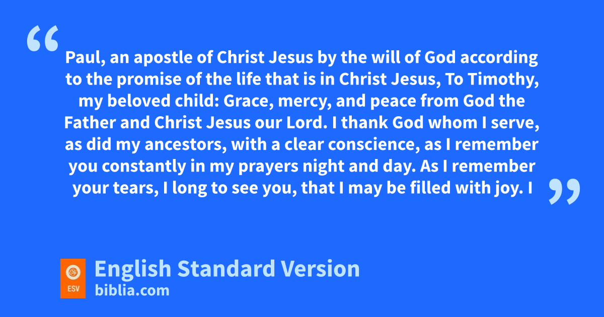 3 fI thank God gwhom I serve, as did my ancestors, hwith a clear conscience, as I remember you iconstantly in my prayers night and day. 4 jAs I remember your tears, kI long to see you, that I may be filled with joy. 5 I am reminded of lyour sincere faith, a faith that dwelt first in your grandmother Lois and myour mother Eunice and now, I am sure, dwells in you as well. 6 For this reason I remind you nto fan into flame the gift of God, which is in you through the laying on of my hands, 7 for God gave us oa spirit not of fear but pof power and love and self-control.