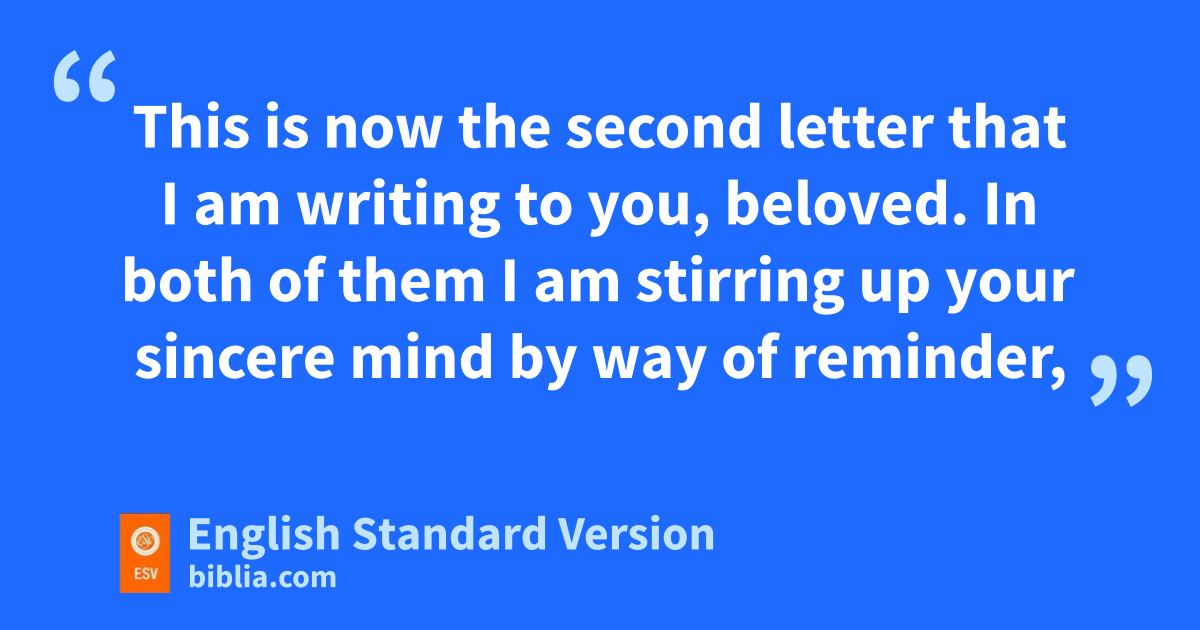 3 This is now the second letter that I am writing to you, beloved. In both of them gI am stirring up your sincere mind by way of reminder, 2 hthat you should remember the predictions of ithe holy prophets and the commandment of the Lord and Savior through your apostles, 3 knowing this first of all, that scoffers will come jin the last days with scoffing, kfollowing their own sinful desires. 4 lThey will say, “Where is the promise of mhis coming? For ever since the fathers fell asleep, all things are continuing as they were from the beginning of creation.” 5 For they deliberately overlook this fact, that the heavens existed long ago, and the earth nwas formed out of water and through water oby the word of God, 6 and that by means of these the world that then existed pwas deluged with water and qperished. 7 But by the same word rthe heavens and earth that now exist are stored up for fire, being kept until the day of judgment and sdestruction of the ungodly.