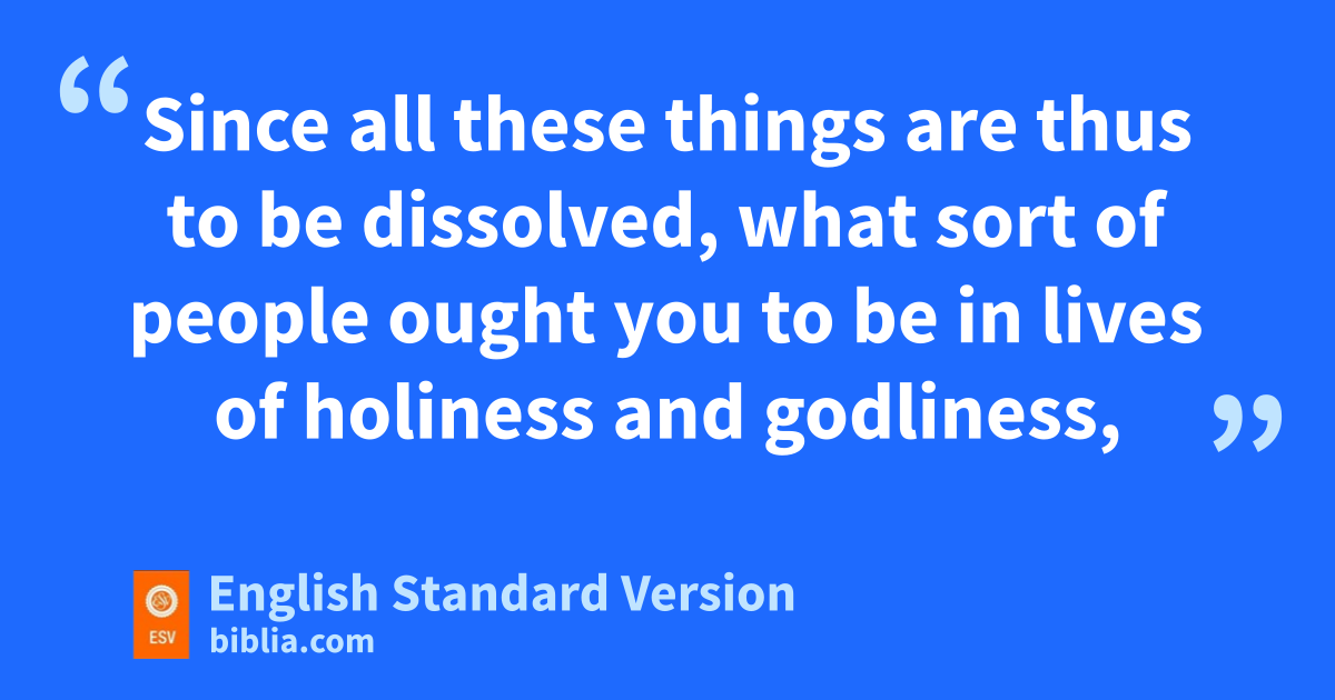 11 Since all these things are thus to be dissolved, cwhat sort of people ought you to be in lives of holiness and godliness, 12 dwaiting for and hastening the coming of the day of God, because of which the heavens will be set on fire and dissolved, and ethe heavenly bodies will melt as they burn! 13 But according to his promise we are waiting for fnew heavens and a new earth gin which righteousness dwells.