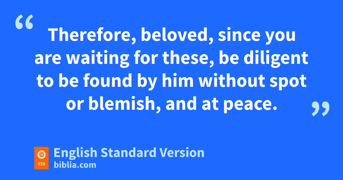 14 hTherefore, beloved, since you are waiting for these, be diligent to be found by him iwithout spot or jblemish, and kat peace. 15 And count lthe patience of our Lord as salvation, just as mour beloved brother Paul also wrote to you naccording to the wisdom given him, 16 as he does in all his letters when he speaks in them of these matters. oThere are some things in them that are hard to understand, which the ignorant and unstable twist to their own destruction, pas they do the other Scriptures. 17 You therefore, beloved, qknowing this beforehand, rtake care that you are not carried away with the error of lawless people and lose your own stability. 18 But sgrow in the grace and knowledge of our Lord and Savior Jesus Christ. tTo him be the glory both now and to the day of ueternity. Amen.