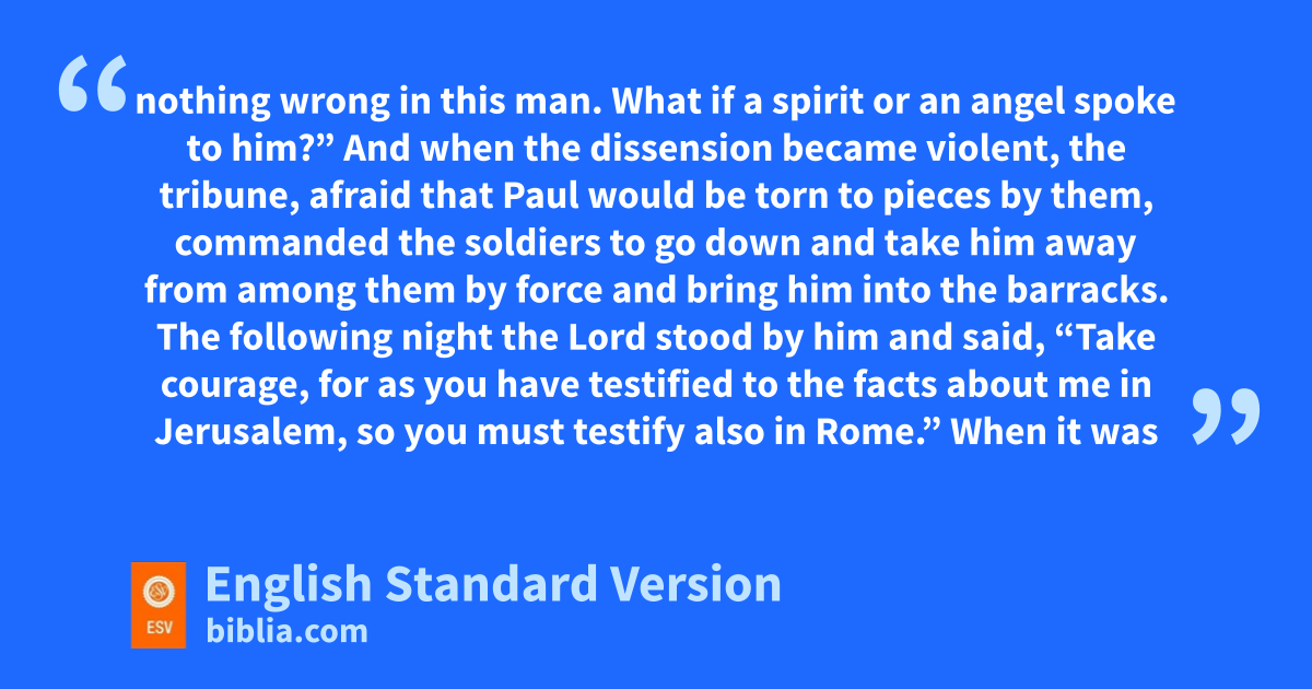 6 Now when Paul perceived that one part were gSadducees and the other Pharisees, he cried out in the council, “Brothers, hI am a Pharisee, a son of Pharisees. It is iwith respect to the jhope and the resurrection of the dead that I am on trial.” 7 And when he had said this, a dissension arose between the Pharisees and the Sadducees, and the assembly was divided. 8 For the Sadducees ksay that there is no resurrection, nor angel, nor spirit, but the Pharisees acknowledge them all. 9 Then a great clamor arose, and some of lthe scribes of the Pharisees’ party stood up and contended sharply, m“We find nothing wrong in this man. What nif a spirit or an angel spoke to him?” 10 And when the dissension became violent, the tribune, afraid that Paul would be torn to pieces by them, commanded the soldiers to go down and take him away from among them by force and bring him into othe barracks.