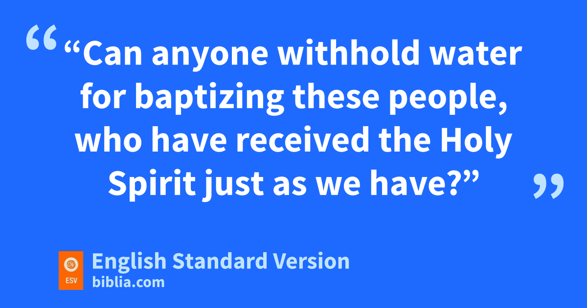 44 While Peter was still saying these things, ithe Holy Spirit fell on all who heard the word. 45 And the believers from among jthe circumcised who had come with Peter were amazed, because kthe gift of the Holy Spirit lwas poured out even on the Gentiles. 46 For they were hearing them mspeaking in tongues and extolling God. Then Peter declared, 47 n“Can anyone withhold water for baptizing these people, who have received the Holy Spirit ojust as we have?” 48 And he pcommanded them qto be baptized in the name of Jesus Christ. Then they asked him to remain for some days.