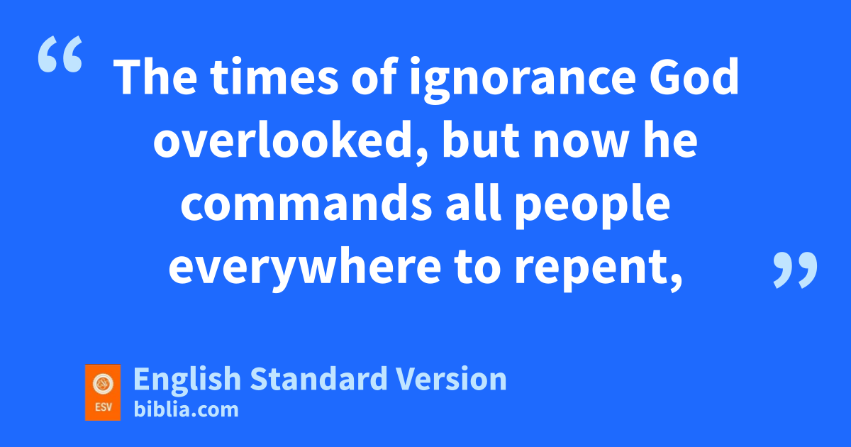 29 gBeing then God’s offspring, hwe ought not to think that the divine being is like gold or silver or stone, an image formed by the art and imagination of man. 30 iThe times of ignorance jGod overlooked, but know he lcommands all people everywhere to repent, 31 because he has fixed ma day on which nhe will judge the world oin righteousness by a man whom he has appointed; and pof this he has given assurance to all qby raising him from the dead.”