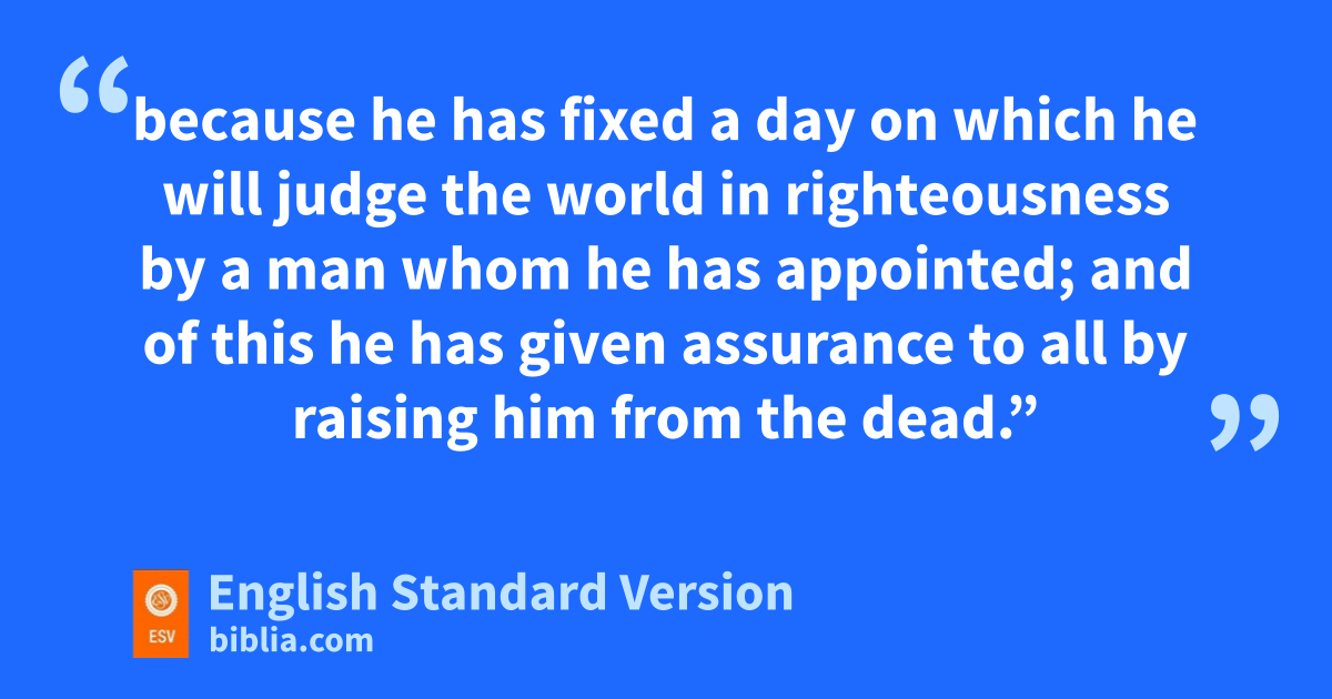 29 gBeing then God’s offspring, hwe ought not to think that the divine being is like gold or silver or stone, an image formed by the art and imagination of man. 30 iThe times of ignorance jGod overlooked, but know he lcommands all people everywhere to repent, 31 because he has fixed ma day on which nhe will judge the world oin righteousness by a man whom he has appointed; and pof this he has given assurance to all qby raising him from the dead.”