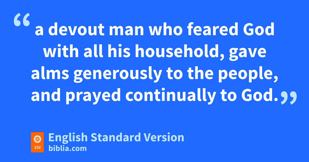 10 At Caesarea there was a man named Cornelius, a centurion of wwhat was known as the Italian Cohort, 2 a devout man xwho feared God with all his household, gave alms generously to the people, and prayed continually to God. 3 yAbout the ninth hour of the day1 zhe saw clearly in a vision aan angel of God come in and say to him, “Cornelius.” 4 And he stared at him in terror and said, “What is it, Lord?” And he said to him, “Your prayers and your alms bhave ascended cas a memorial before God. 5 And now send men to Joppa and bring one Simon who is called Peter. 6 He is lodging dwith one Simon, a tanner, whose house is by the sea.” 7 When the angel who spoke to him had departed, he called two of his servants and a devout soldier from among those who attended him, 8 and having related everything to them, he sent them to Joppa.