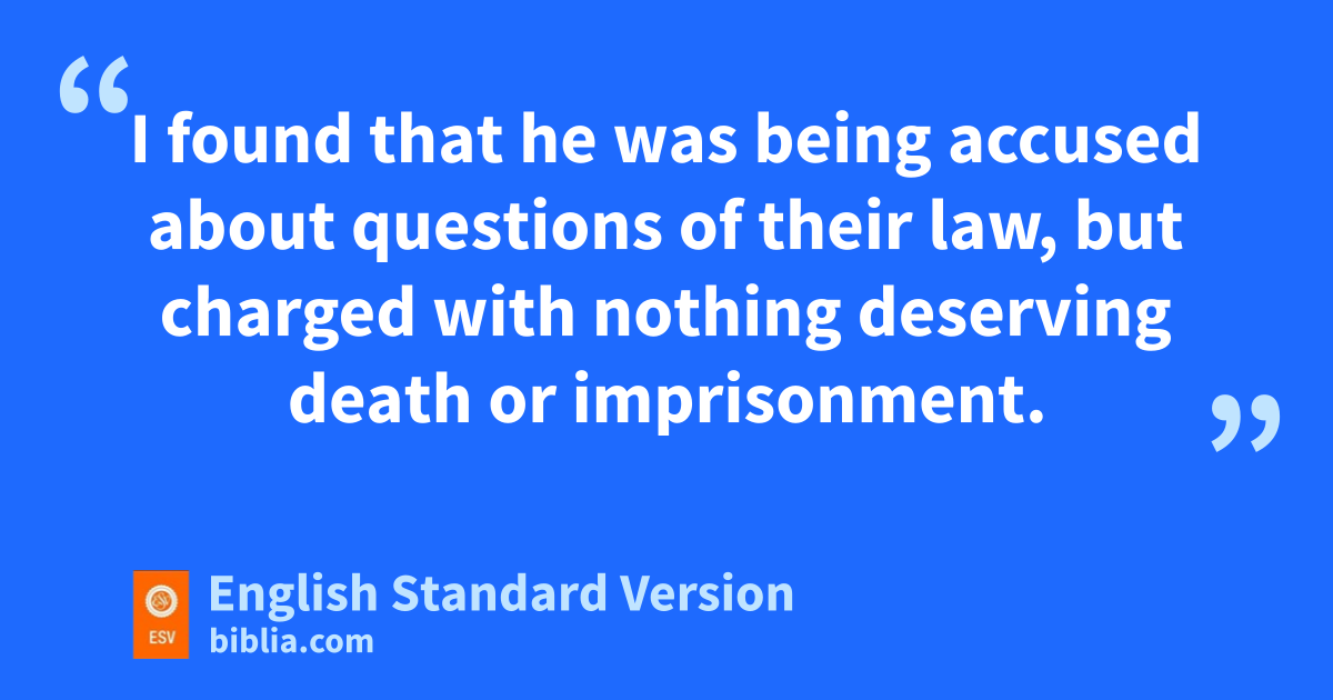 26 “Claudius Lysias, to chis Excellency the governor Felix, dgreetings. 27 eThis man was seized by the Jews and fwas about to be killed by them fwhen I came upon them with the soldiers and rescued him, ghaving learned that he was a Roman citizen. 28 And hdesiring to know the charge for which they were accusing him, I brought him down to their council. 29 I found that he was being accused iabout questions of their law, but jcharged with nothing deserving death or imprisonment. 30 kAnd when it was disclosed to me lthat there would be a plot against the man, I sent him to you at once, mordering his accusers also to state before you what they have against him.”
