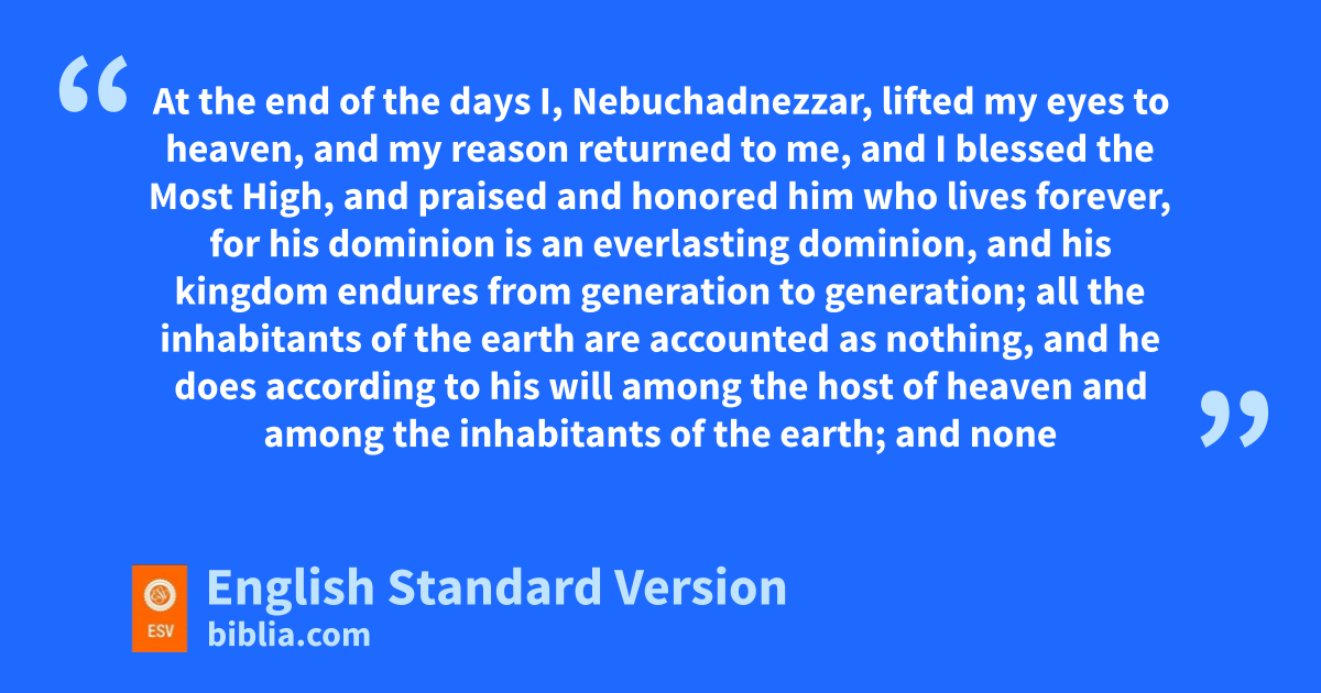 34 nAt the end of the days I, Nebuchadnezzar, lifted my eyes to heaven, and omy reason returned to me, and I blessed the Most High, and praised and honored phim who lives forever,