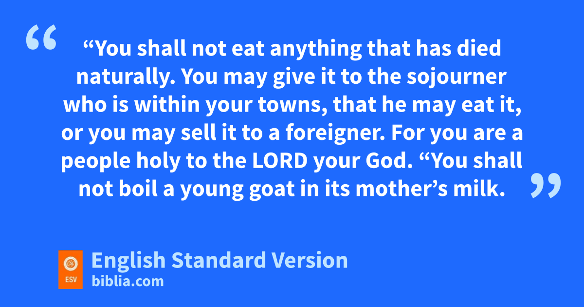 21 x“You shall not eat anything that has died naturally. You may give it to the sojourner who is within your towns, that he may eat it, or you may sell it to a foreigner. For yyou are a people holy to the Lord your God.