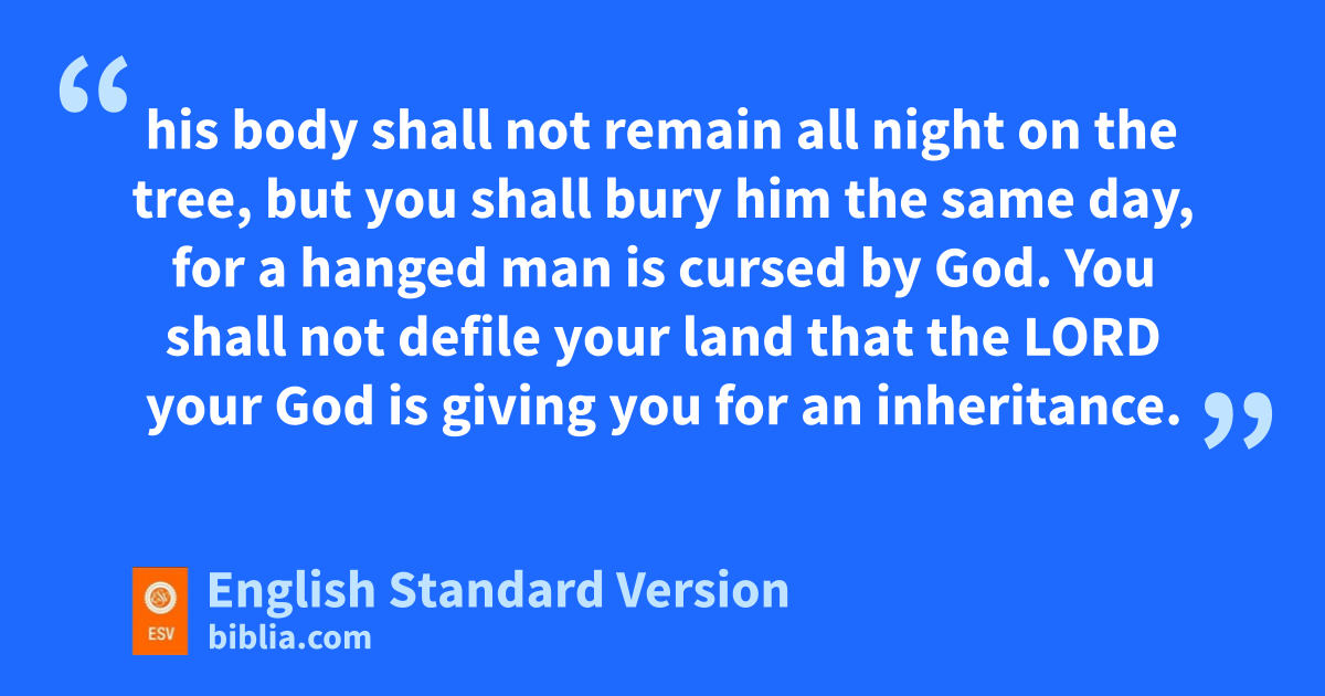 22 “And if a man has committed a crime punishable by death and he is put to death, and you hang him on a tree, 23 phis body shall not remain all night on the tree, but you shall bury him the same day, for qa hanged man is cursed by God. rYou shall not defile your land that the Lord your God is giving you for an inheritance.