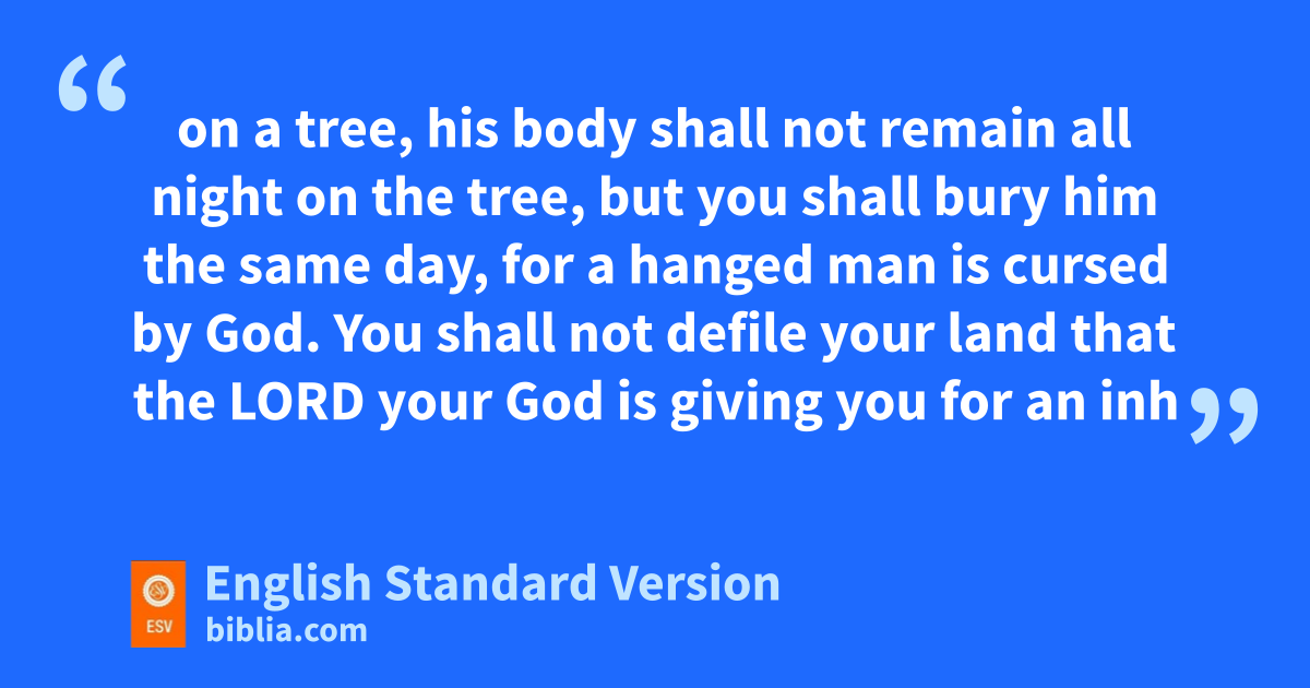 22 “And if a man has committed a crime punishable by death and he is put to death, and you hang him on a tree, 23 phis body shall not remain all night on the tree, but you shall bury him the same day, for qa hanged man is cursed by God. rYou shall not defile your land that the Lord your God is giving you for an inheritance.