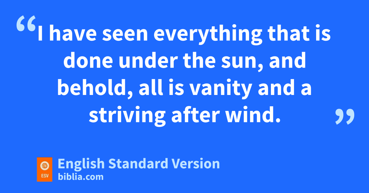 12 I othe Preacher have been king over Israel in Jerusalem. 13 And I papplied my heart6 to seek and to search out by wisdom all that is done under heaven. It is an unhappy qbusiness that God has given to the children of man to be busy with. 14 I have seen everything that is done under the sun, and behold, all is rvanity7 and a striving after wind.8