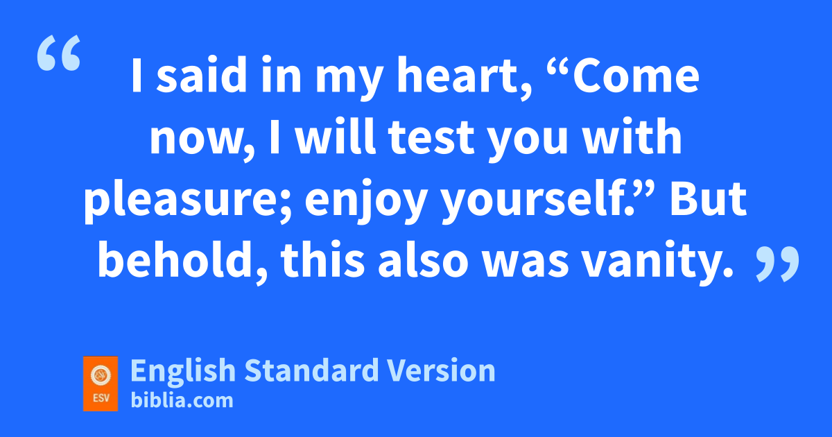 2 I xsaid in my heart, “Come now, I will test you with pleasure; enjoy yourself.” But behold, this also was vanity.1 2 I ysaid of laughter, “It is mad,” and of pleasure, “What use is it?” 3 I zsearched with my heart how to cheer my body with wine—my heart still guiding me with wisdom—and how to lay hold on afolly, till I might see what was good for the children of man to do under heaven during the few days of their life. 4 I made great works. I bbuilt houses and planted cvineyards for myself. 5 I made myself dgardens and parks, and planted in them all kinds of fruit trees. 6 I made myself pools from which to water the forest of growing trees. 7 I bought male and female slaves, and had eslaves who were born in my house. I had also great possessions of fherds and flocks, more than any who had been before me in Jerusalem. 8 I also gathered for myself silver and ggold and the treasure of hkings and iprovinces. I got jsingers, both men and women, and many kconcubines,2 the delight of the sons of man.