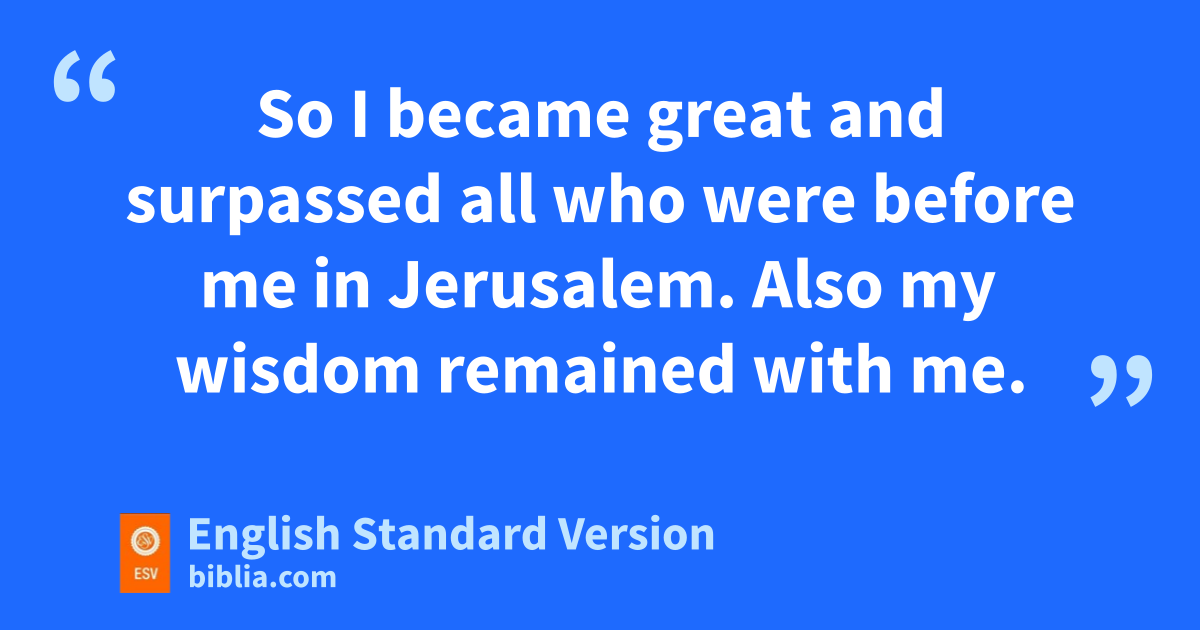 9 So I became great and lsurpassed all who were before me in Jerusalem. Also my lwisdom remained with me. 10 And whatever my eyes desired I did not keep from them. I kept my heart from no pleasure, for my heart mfound pleasure in all my toil, and this was my nreward for all my toil. 11 Then I considered all that my hands had done and the toil I had expended in doing it, and behold, all was ovanity and a striving after wind, and there was nothing pto be gained under the sun.