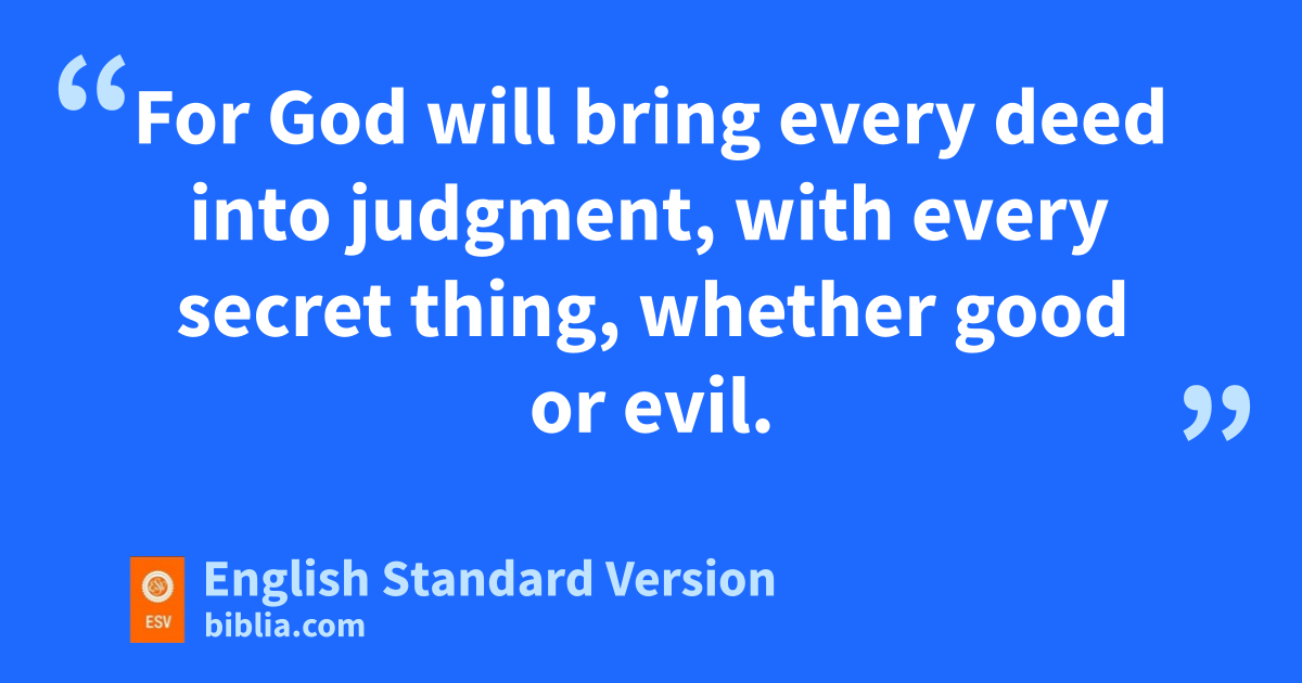 13 The end of the matter; all has been heard. wFear God and keep his commandments, for this is the whole duty of man.3 14 For xGod will bring every deed into judgment, with4 every secret thing, whether good or evil.