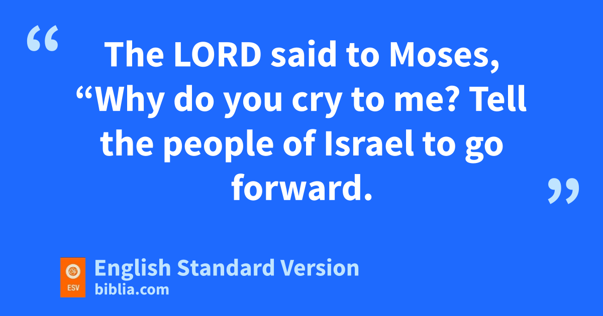 15 The Lord said to Moses, “Why do you cry to me? Tell the people of Israel to go forward. 16 kLift up your staff, and kstretch out your hand over the sea and divide it, that the people of Israel may go through the sea on dry ground. 17 And lI will harden the hearts of the Egyptians so that they shall go in after them, and mI will get glory over Pharaoh and all his host, his chariots, and his horsemen. 18 And the Egyptians nshall know that I am the Lord, mwhen I have gotten glory over Pharaoh, his chariots, and his horsemen.”