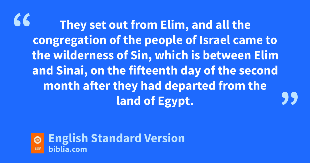 16 They kset out from Elim, and all the congregation of the people of Israel came to the wilderness of Sin, which is between Elim and Sinai, on the fifteenth day of the second month after they had departed from the land of Egypt. 2 And the whole congregation of the people of Israel lgrumbled against Moses and Aaron in the wilderness, 3 and the people of Israel said to them, m“Would that we had died by the hand of the Lord in the land of Egypt, nwhen we sat by the meat pots and ate bread to the full, for you have brought us out into this wilderness to kill this whole assembly with hunger.”