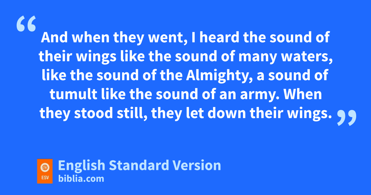 22 Over the heads of the living creatures there was kthe likeness of an expanse, shining like awe-inspiring lcrystal, spread out above their heads. 23 And under the expanse their wings were mstretched out straight, one toward another. nAnd each creature had two wings covering its body. 24 And when they went, I heard the sound of their wings olike the sound of many waters, like pthe sound of the qAlmighty, a sound of tumult rlike the sound of an army. When they stood still, they let down their wings. 25 And there came a voice from above sthe expanse over their heads. When they stood still, they let down their wings.