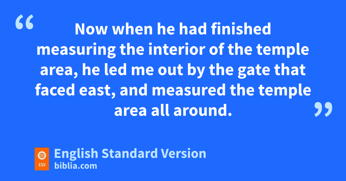 15 Now when he had finished measuring the interior of the temple area, he led me out by wthe gate that faced east, and measured the temple area all around. 16 He measured the east side with xthe measuring reed, 500 cubits by the measuring reed all around. 17 He measured the north side, 500 cubits by the measuring reed all around. 18 He measured the south side, 500 cubits by the measuring reed. 19 Then he turned to the west side and measured, 500 cubits by the measuring reed. 20 He measured it on the four sides. It had ya wall around it, z500 cubits long and z500 cubits broad, ato make a separation between the holy and the common.
