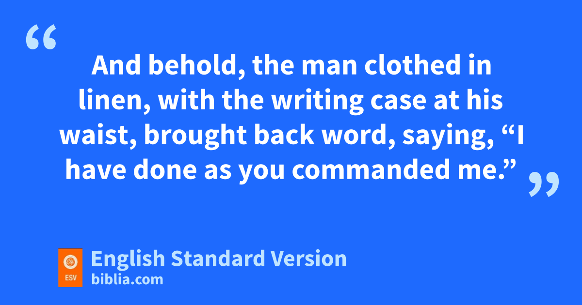 11 And behold, wthe man clothed in linen, with the writing case at his waist, brought back word, saying, “I have done as you commanded me.”